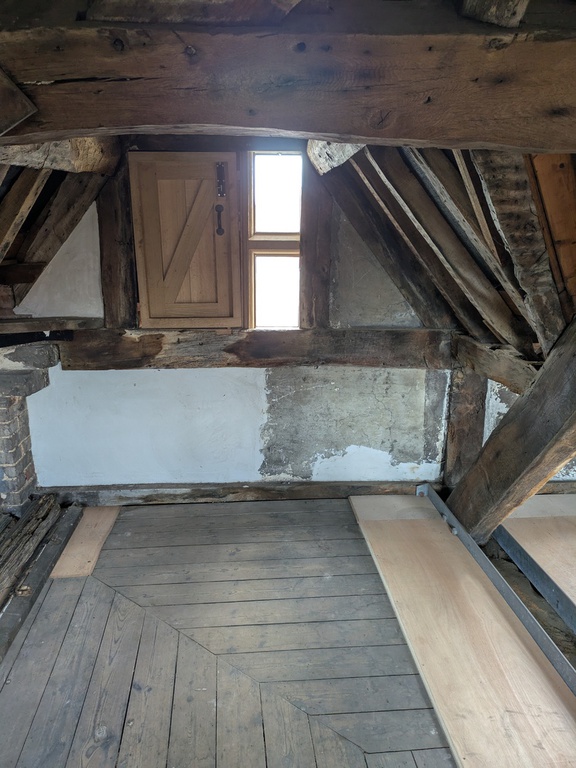 During the Spring of 2025, a major restoration project was initiated by the owner, Andy Malone, in co-ordination with English Heritage, to protect the medieval windows and secure the roofing. You can see examples of the work done to date in the photographs below. We hope that the continued presence of the Antiques Centre will help to breathe life back into large parts of "No 26".